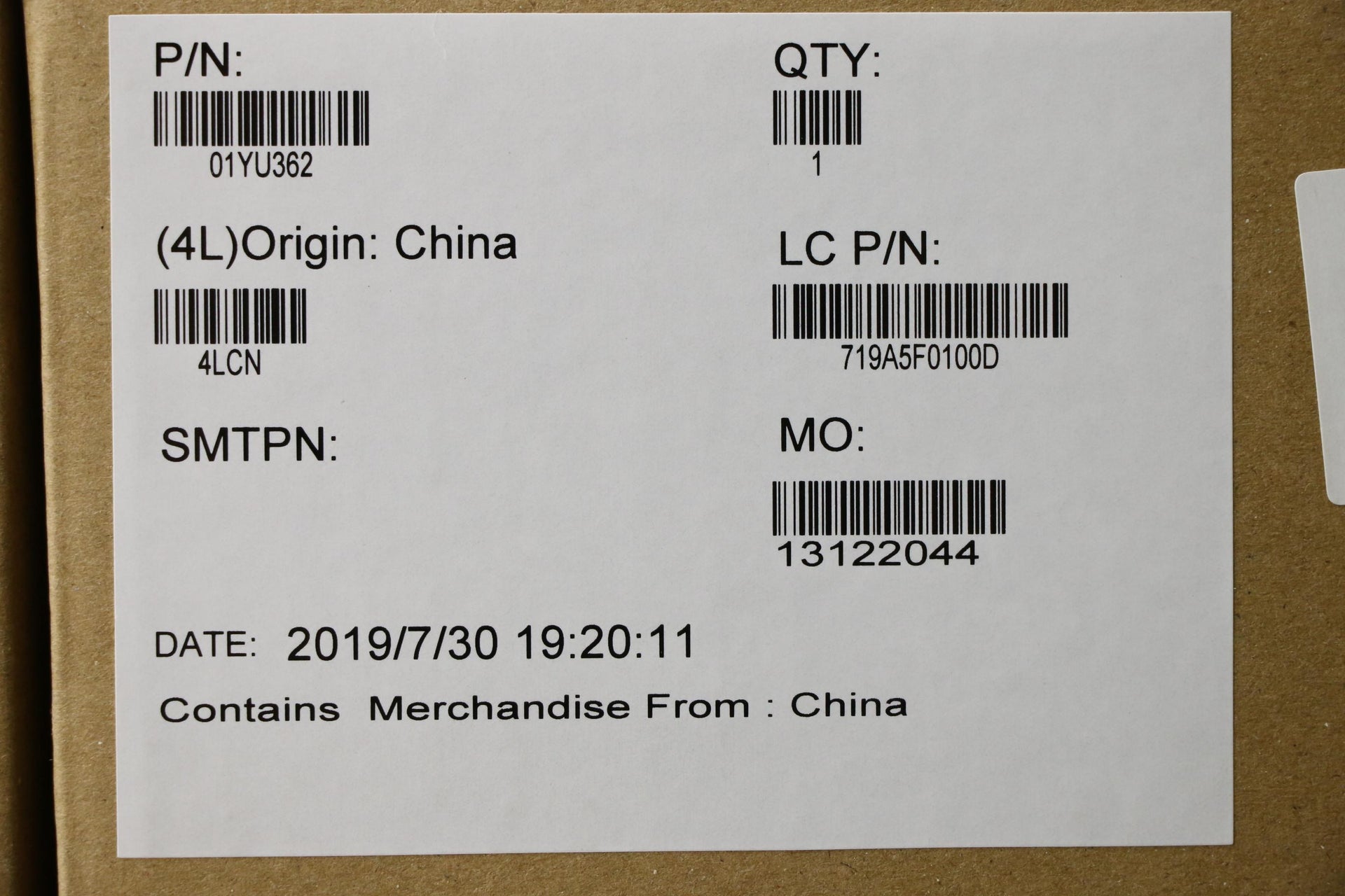 Part Number : 01YU362 |