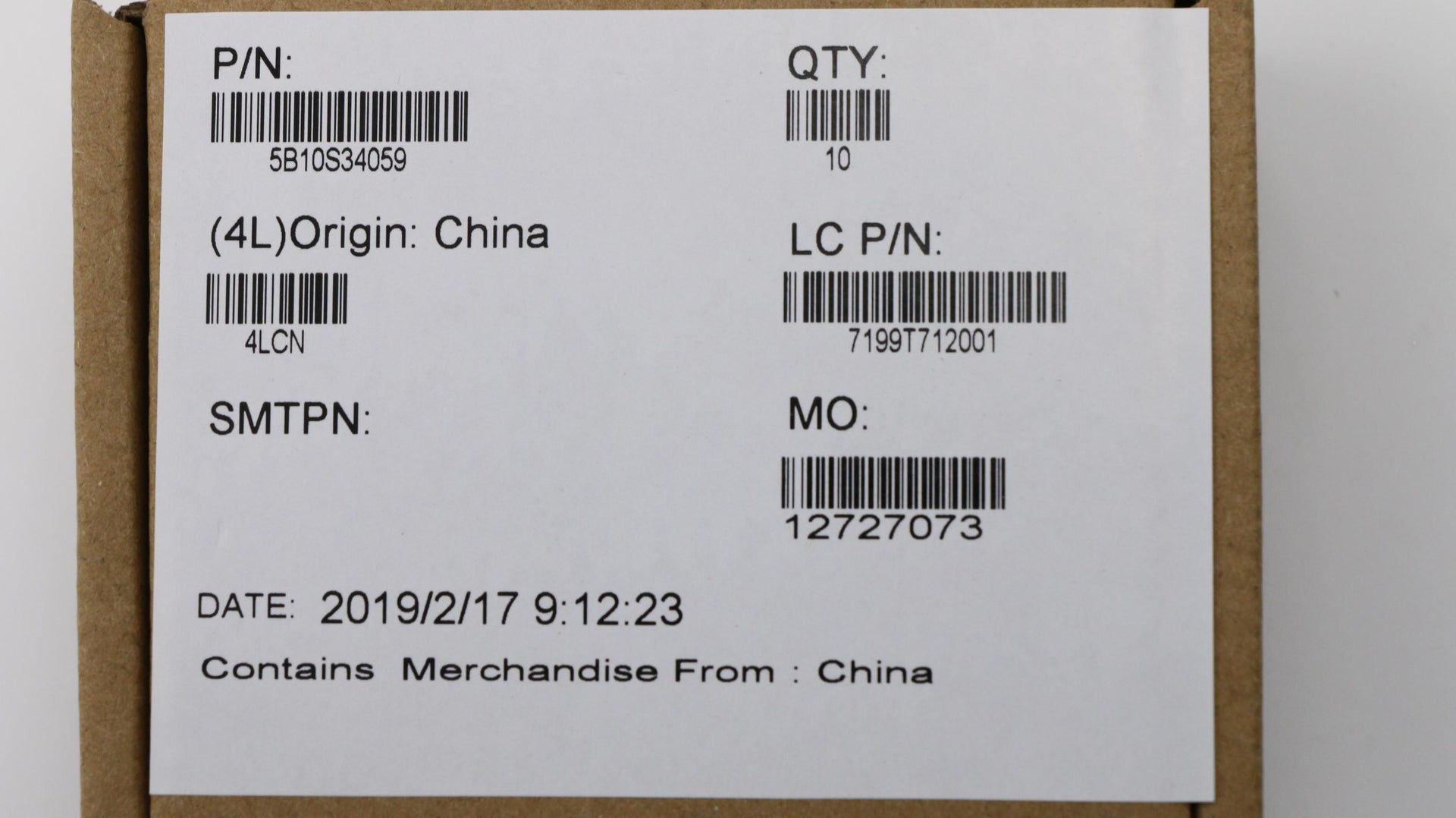 Part Number : 5B10S34059 |