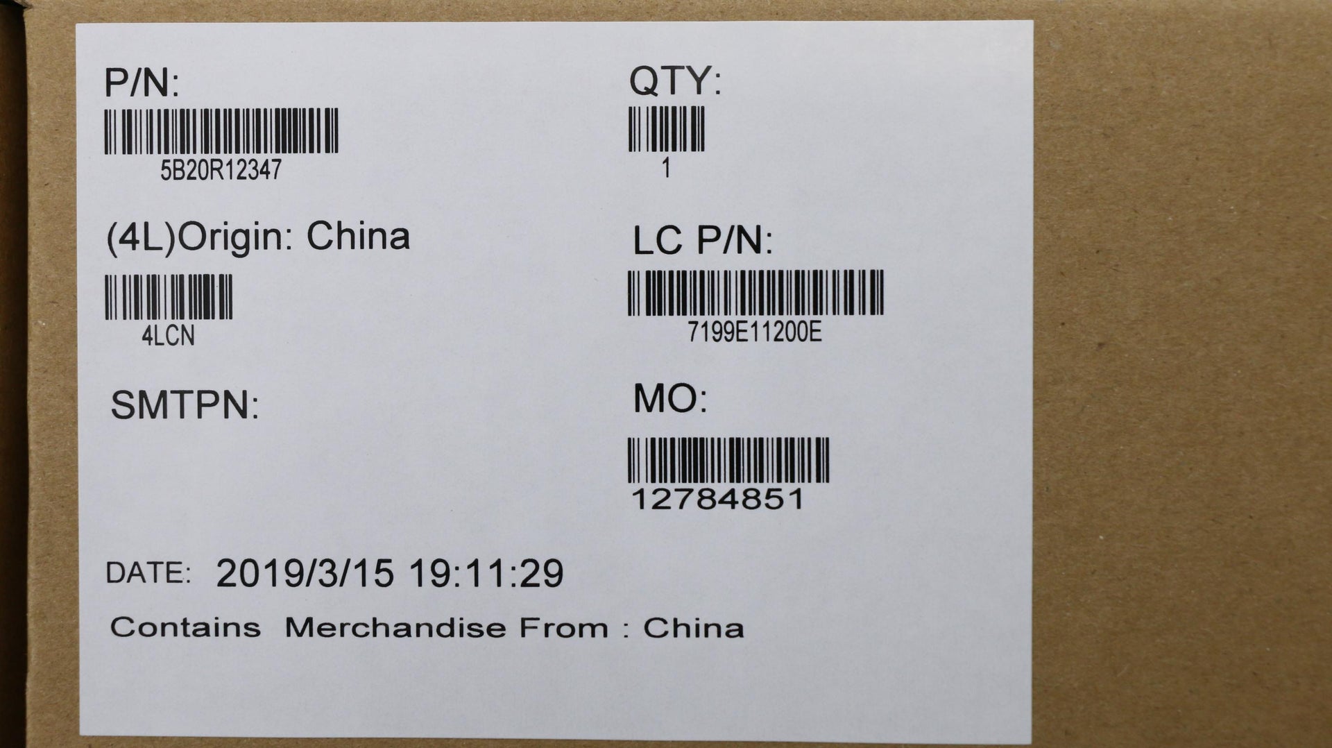 Part Number : 5B20R12347 |