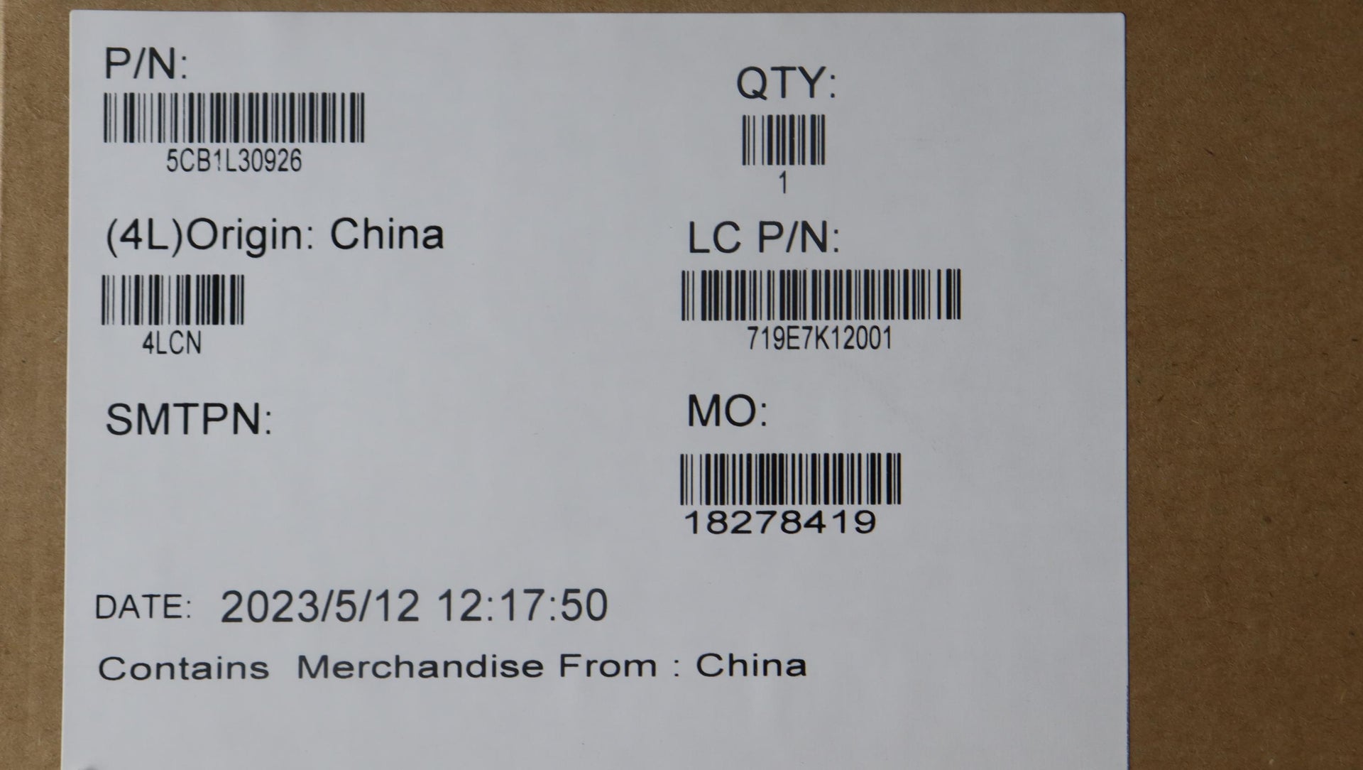 Part Number : 5CB1L30926 |