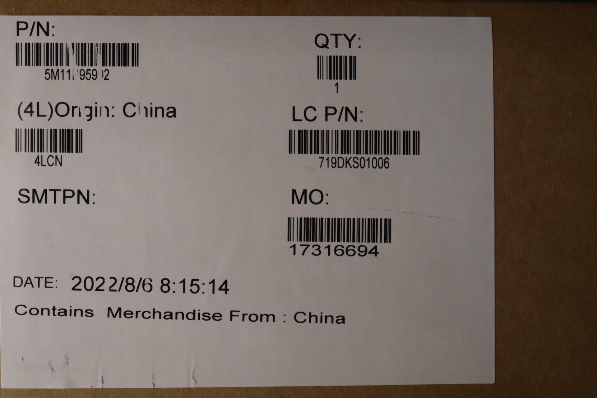 Part Number : 5M11B95902 |