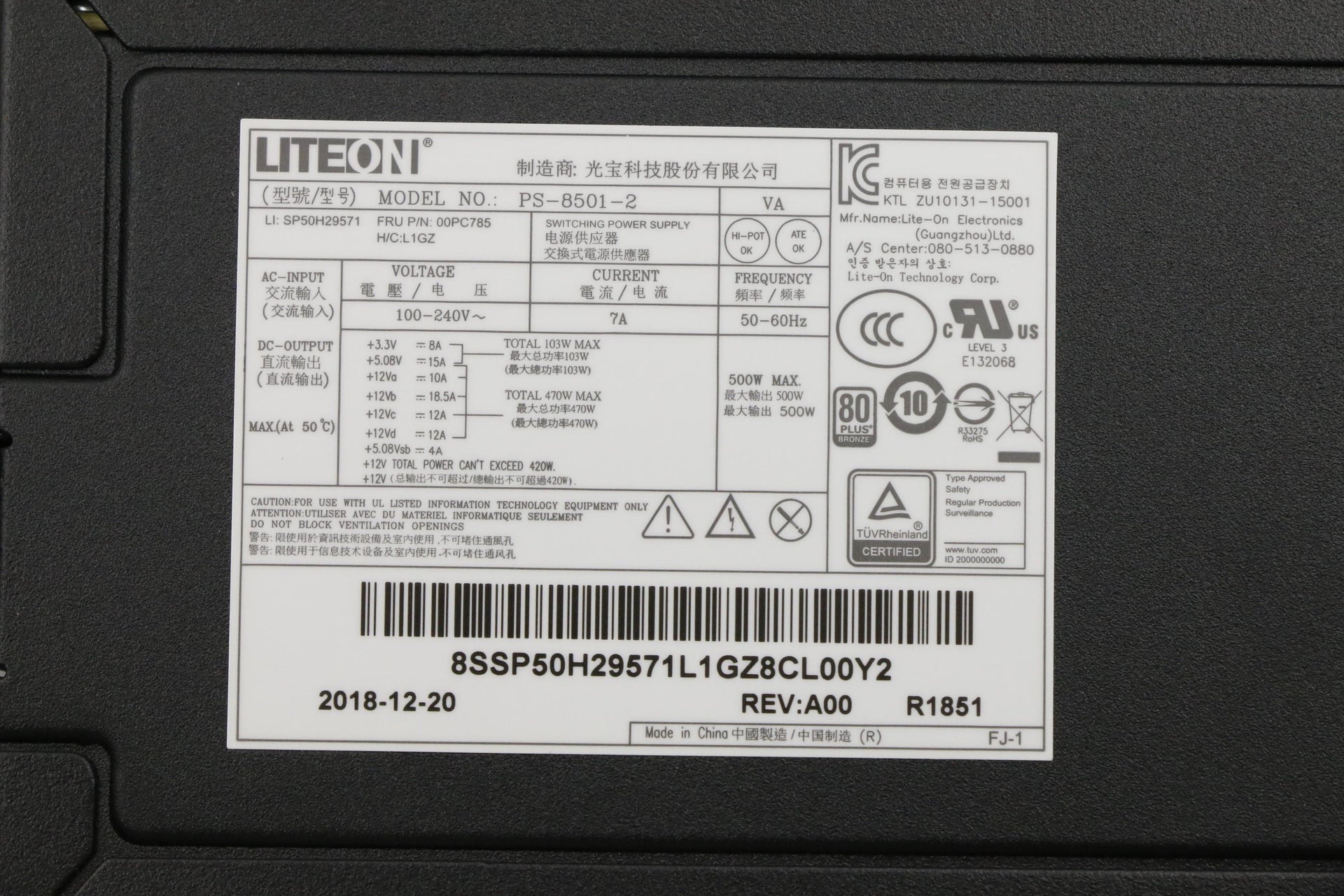 The Lenovo 500W Internal Power Supply Unit (SKU: 00PC785) is specifically designed to meet the power demands of both conventional and advanced computing systems. Functioning effectively within a voltage range of 100-240VAC, this power supply boasts an impressive output of 500 watts. It’s an outstanding solution for desktops and workstations, catering primarily to professionals and tech enthusiasts who prioritize performance and reliability in their hardware components. Lenovo, renowned for its commitment to technological excellence, ensures that this power supply unit provides outstanding stability and longevity, significantly reducing the likelihood of failures while maximizing your hardware’s operational potential. Its ingeniously compact design allows for effortless integration into a wide array of case layouts, while the ability to handle short-term power fluctuations adds a layer of flexibility for those transient energy needs. When you choose the Lenovo 500W Internal Power Supply, you’re choosing a high-quality, dependable source of power that supports your computing activities with confidence and efficiency.