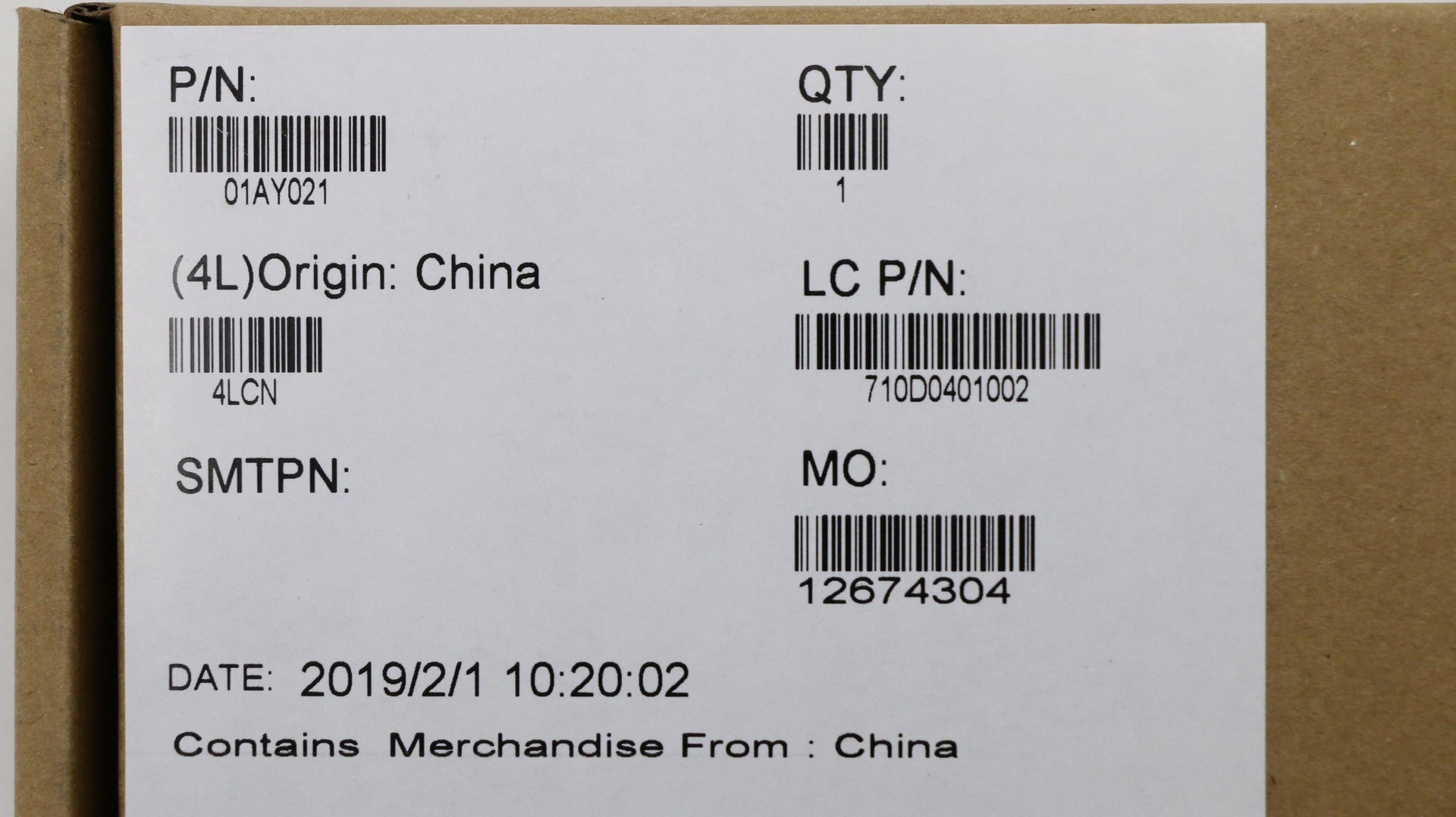 Part Number : 01AY021 |