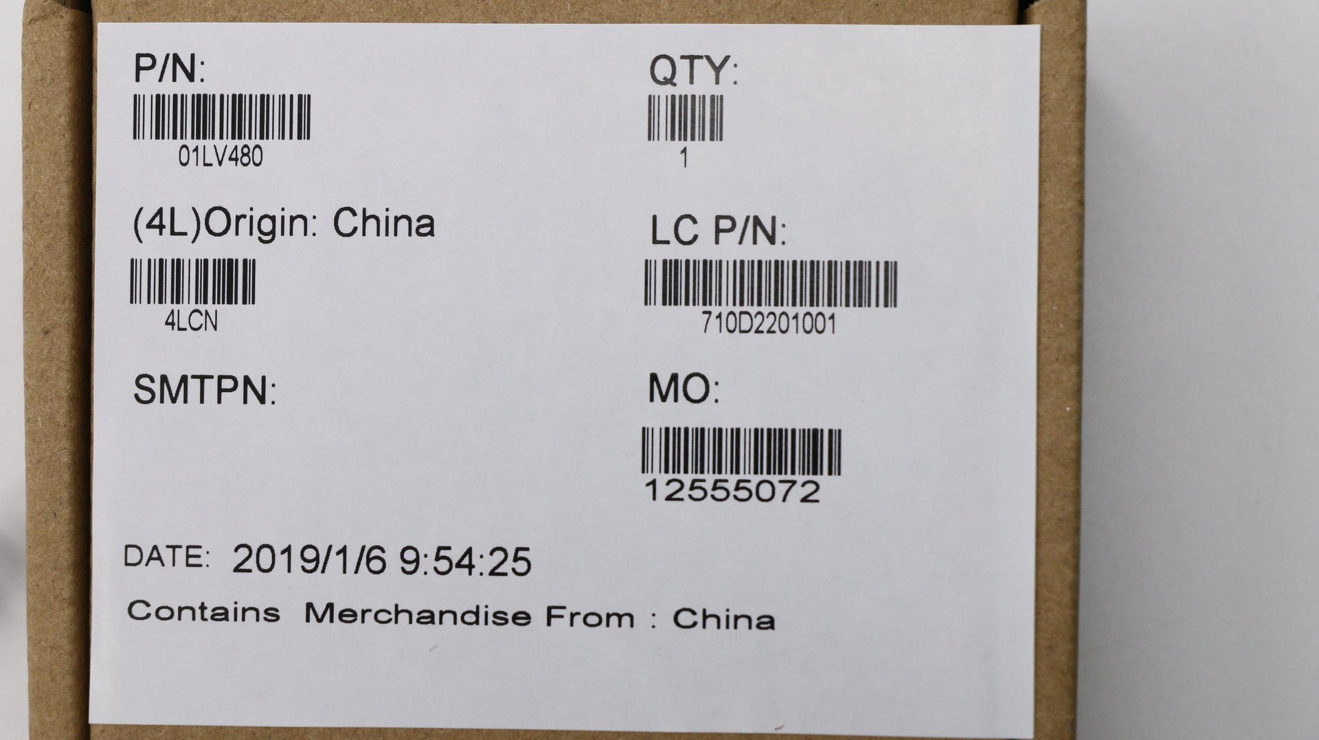Part Number : 01LV480 |