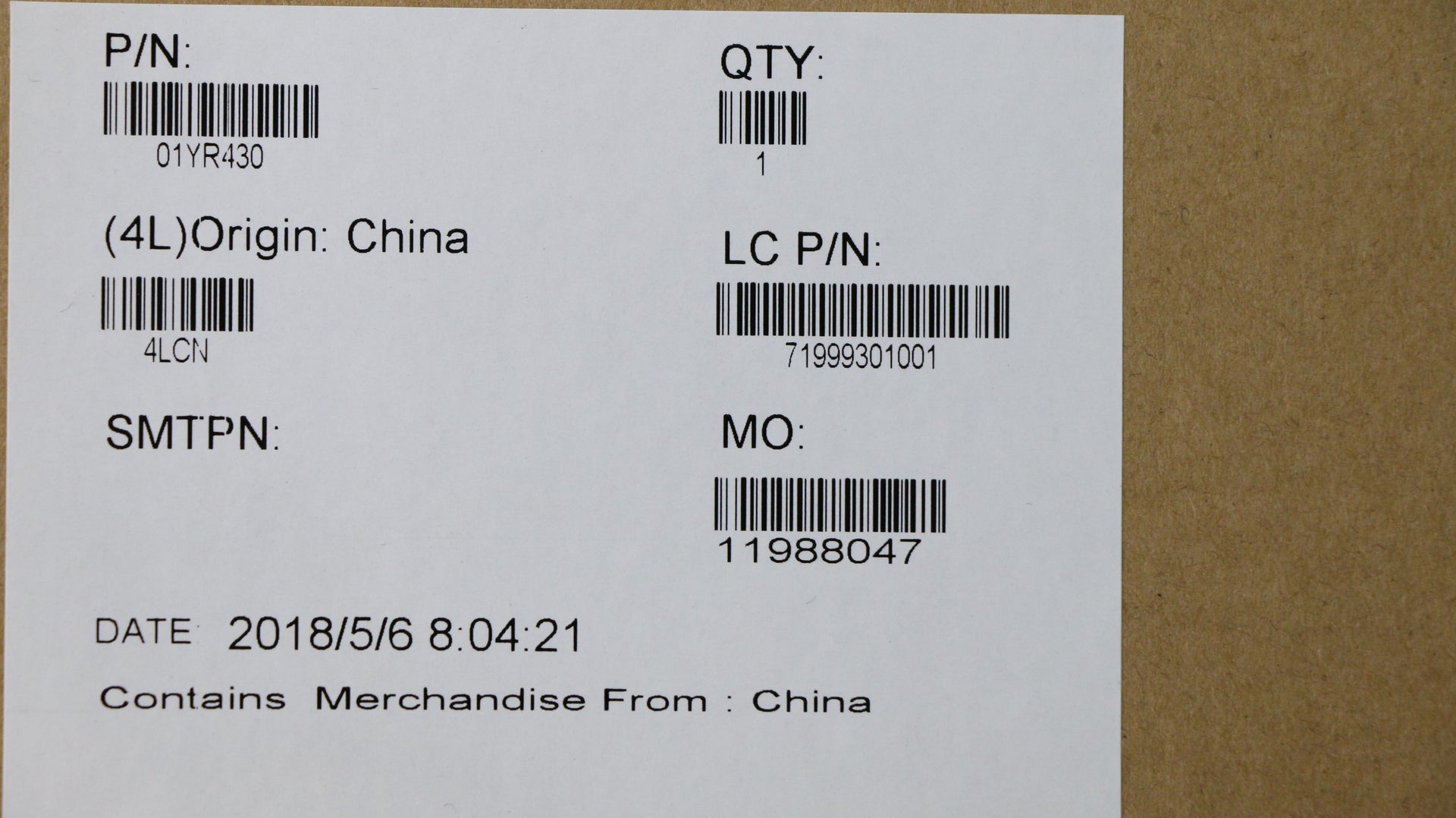 Part Number : 01YR430 |