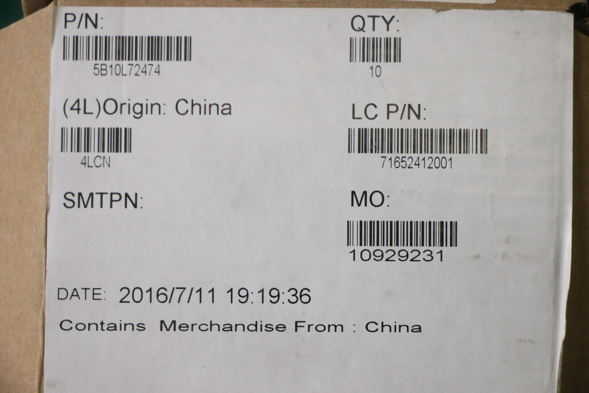 Part Number : 5B10L72474 |